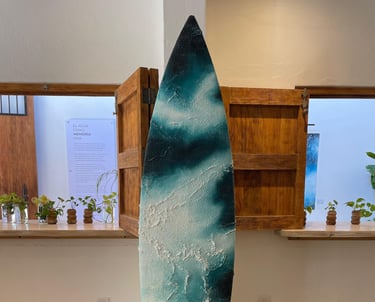 Diseños en tablas recicladas de surf.